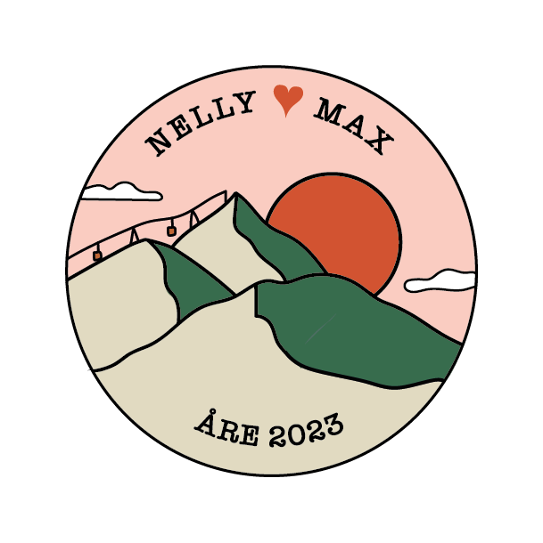 A couple asking to create an illustration visualizing the town Åre. A ski town in Sweden. They wanted a patch to go on beanies that they would give out to everyone at their wedding.